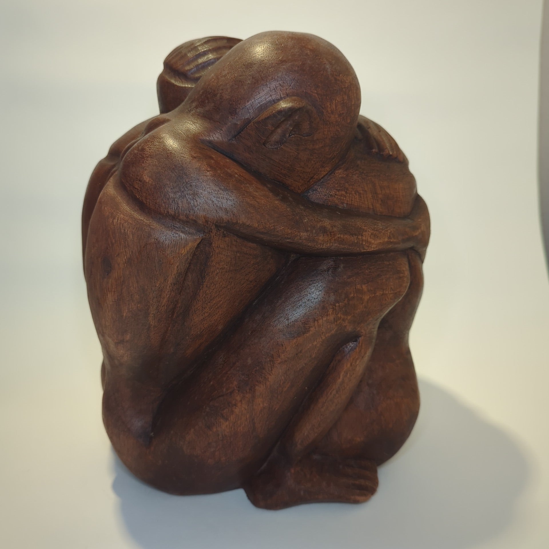 These solid wood sculptures depict a loving couple , handcrafted in Bali using traditional techniques. The teak wood used is prized for its high quality, warm coloring, and natural grain, making each piece unique . The sculptures embody deep connection and harmony through their characteristically flowing lines and fine detailing. Because the figures are hand-carved and left in their natural state , they exude an authentic and organic aesthetic. Standing approximately 30 cm tall (dimensions approximately 12 cm wide x 30 cm high x 6 cm deep), this art object is a timeless focal point for the living room or bedroom and makes a perfect, meaningful gift for special occasions such as weddings or anniversaries.