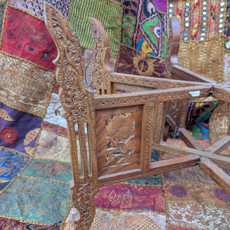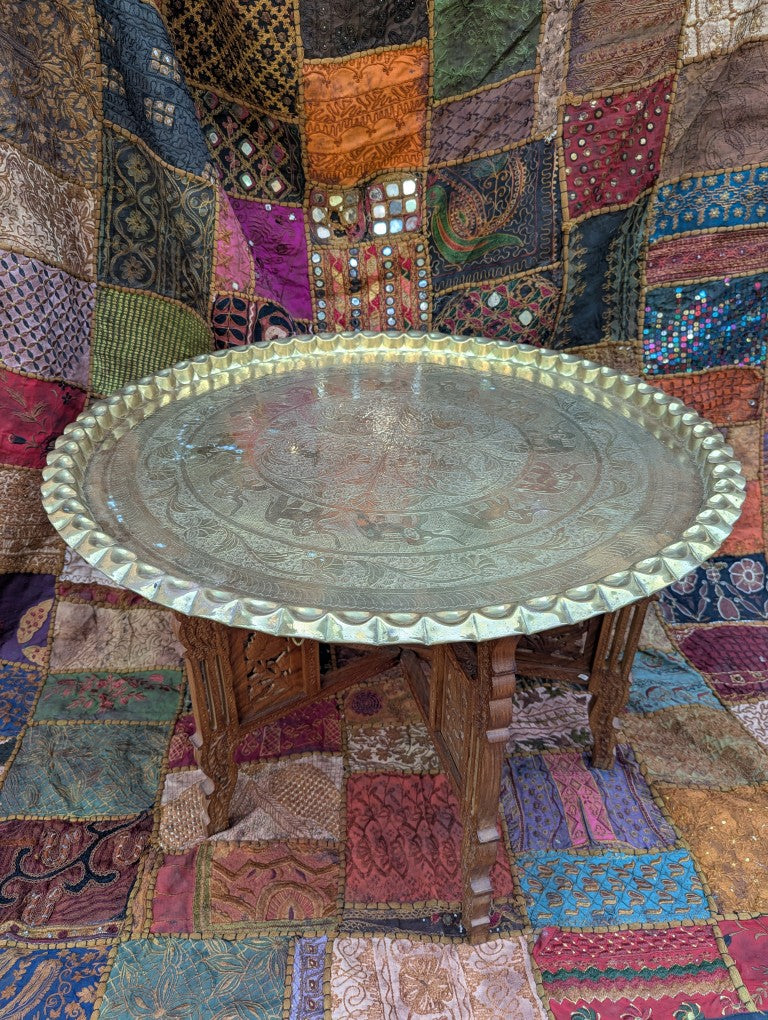 This unique piece invites you to add an exotic touch to your home. The centerpiece is a hand-hammered brass plate featuring an intricate elephant and floral motif . This artful plate rests on a sturdy, hand-carved teak frame . A striking detail that draws the eye is the continuous floral design that adorns all sides of the frame . Acquire this unique ensemble of brass plate and carved wood today and enhance your interior!