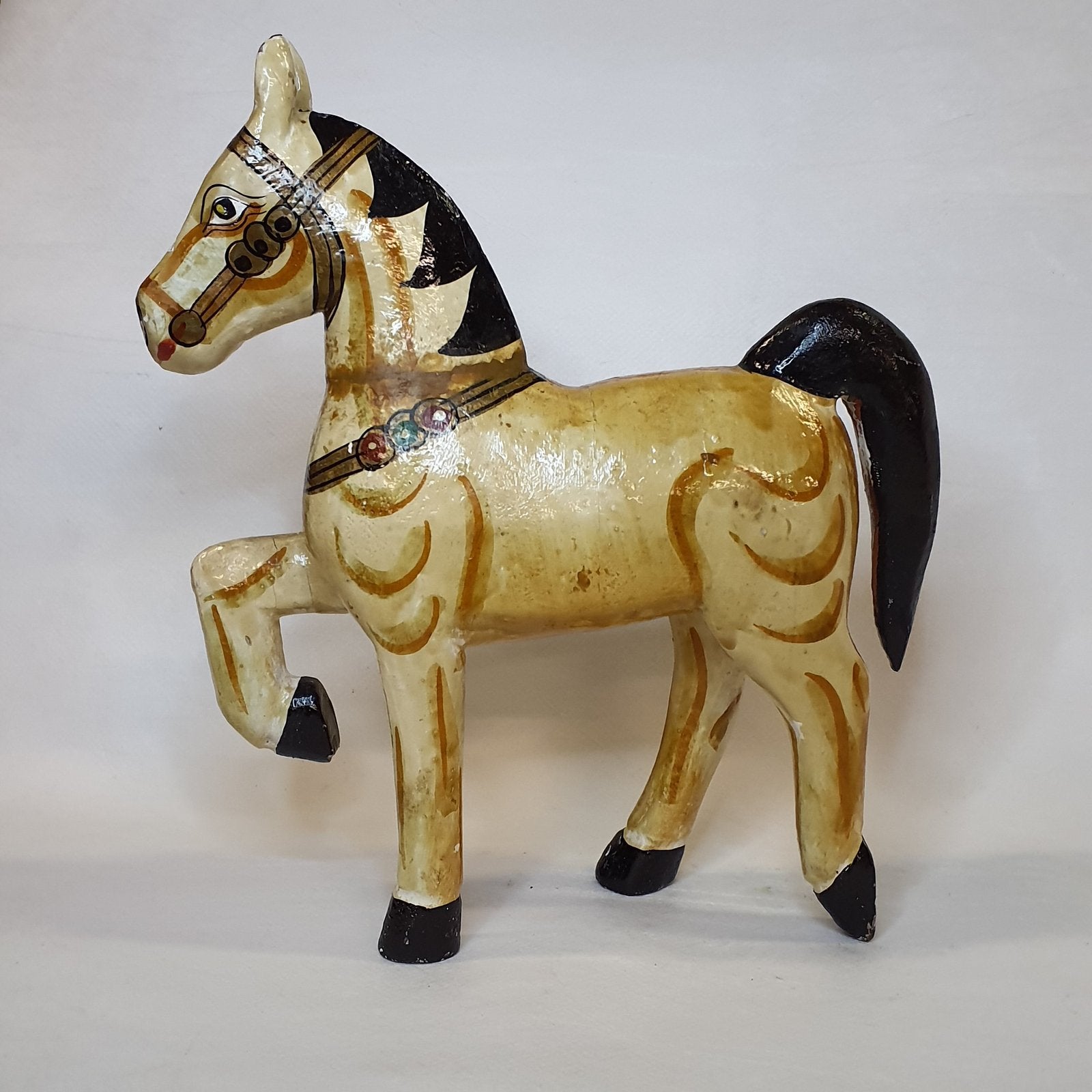 Wooden horse figurine, hand-painted – decorative unique piece, 20 cm
