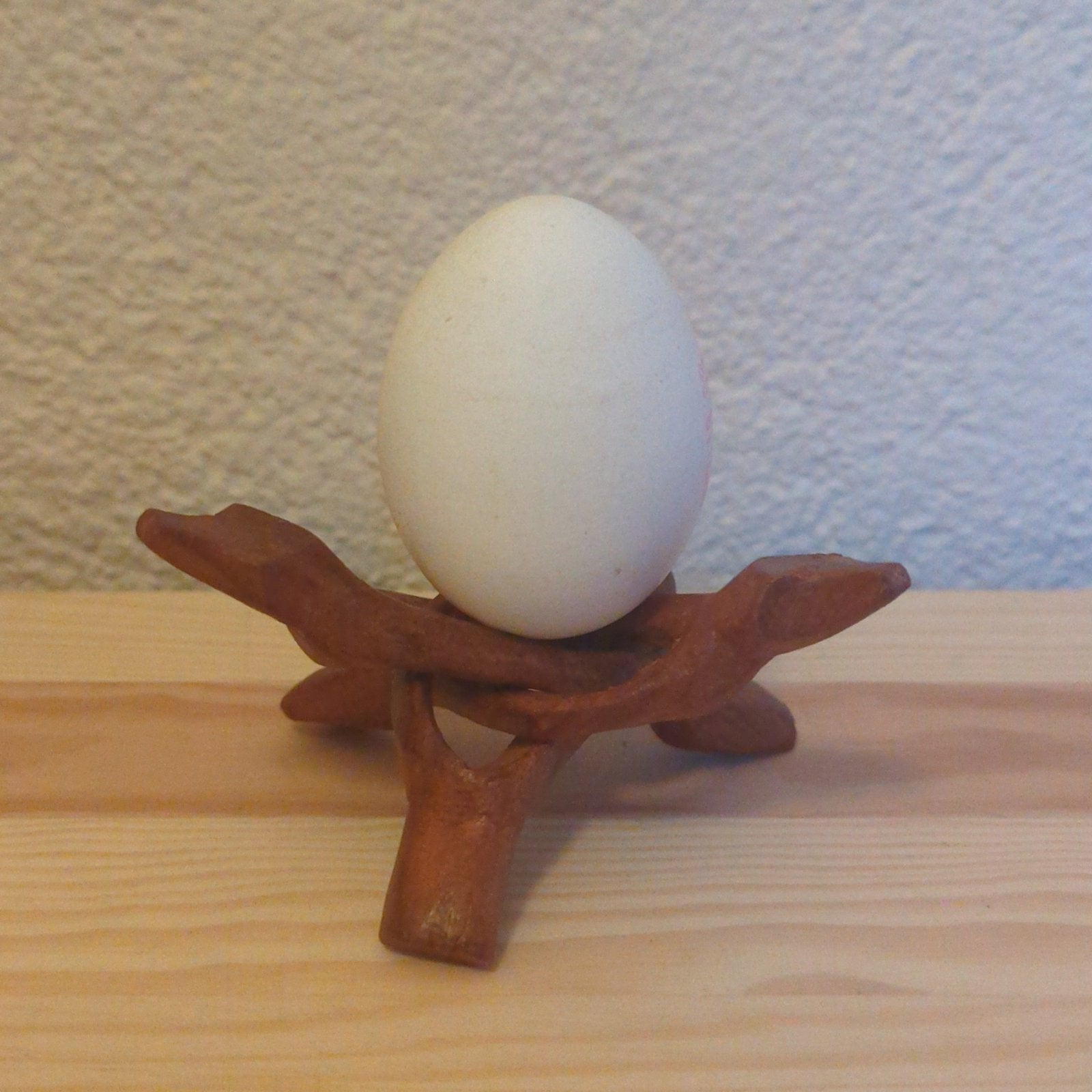 This unique product description refers to a cobra-shaped stand made of teak wood , bringing a natural and warm touch to your décor. This handcrafted piece impresses with its simple, elegant design and the characteristic grain of the high-quality teak wood – making each piece unique . The robust teak wood lends a rustic yet sophisticated charm and ensures a long lifespan , making the stand a durable companion that perfectly combines naturalness and style. The stand is multifunctional : it is perfect as an egg cup , a small display for jewelry or collectibles , or simply as a decorative element . Measuring approximately 4 cm in height and 8 cm in diameter , and weighing only about 10 g, this accessory is ideal for the kitchen, the dining table , or as a decorative accent in your home.