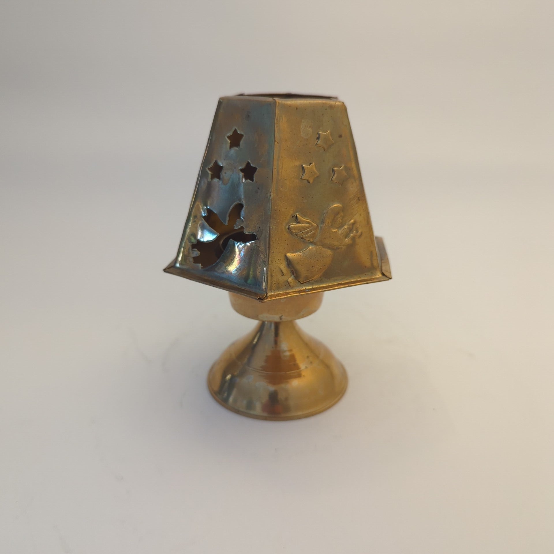 This elegant tealight holder captivates with its handcrafted Christmas angel motif and brings a contemplative atmosphere to your home. Made of high-quality brass , the material, combined with candlelight, creates a particularly warm play of light and lends your Christmas decorations a festive glow . Each piece is a unique, handcrafted item from India , which is reflected in the fine, individual details of its design. With a height of approximately 12.5 cm and a diameter of approximately 10 cm, this holder is perfectly suited for tealights and small candles . Whether on the festive table or as a luminous accent in the window – this tealight holder combines traditional craftsmanship with Christmas elegance.